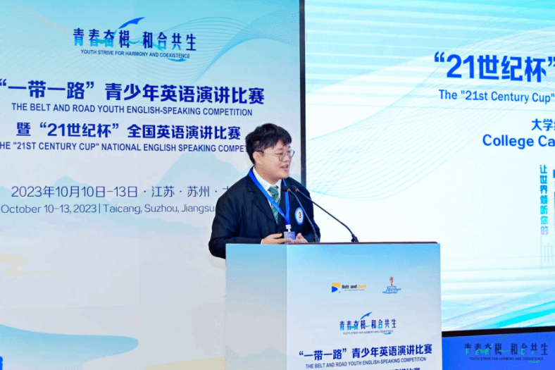 新闻背景:“21世纪杯”全国英语演讲比赛由中国日报社创办于1996年,旨在提高中国青年讲好中国故事的能力水平,为加强我国国际传播能力建设、促进文明交流互鉴、推动构建人类命运共同体凝聚青春力量。赛事于2023年3月入选“全国学科竞赛名单”,属于国家级A类学科竞赛。(图/杨振亿 文/周薇薇)