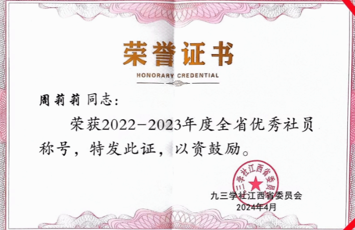 我院教师周莉莉受到九三学社江西省委会表彰