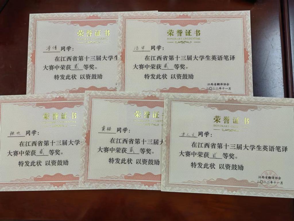 我校学子在江西省第十三届英语笔译大赛中喜获佳绩