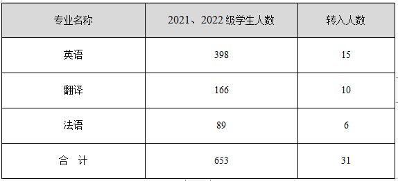 1. 4月10日至4月14日,外国语学院2021、2022级拟转出的学生将转专业申请表交至外国语学院教务办公室;