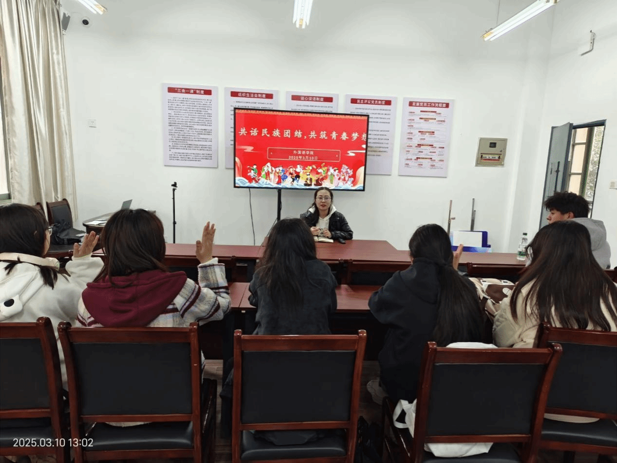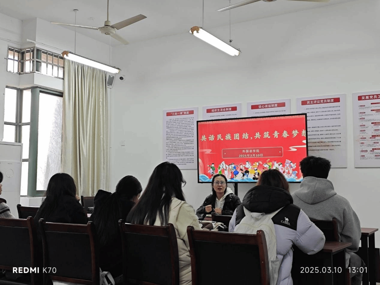 为进一步促进民族团结,传承优秀传统文化,3月10日,外国语学院在崇德楼A103开展了“共话民族团结,共筑青春梦想”座谈会。外国语学院辅导员苏佳蕊和各民族学生代表参加此次座谈会。