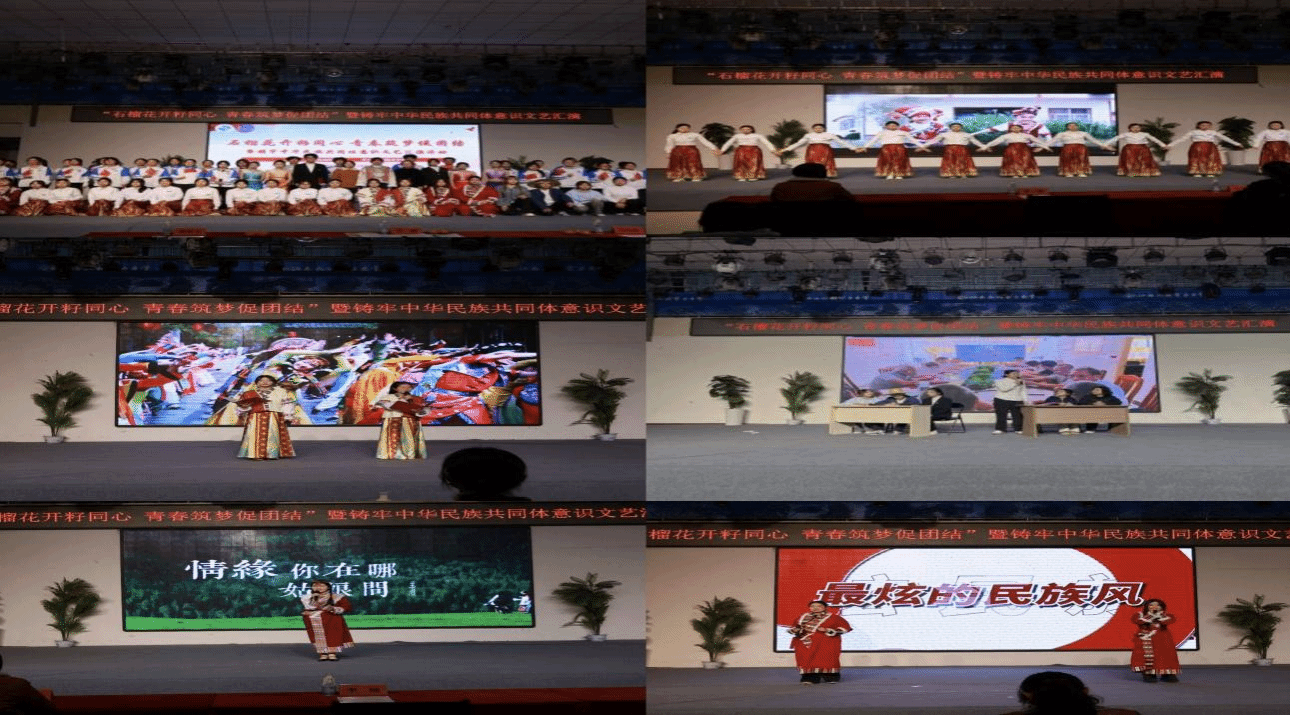 2025年11月18日晚,由党委统战部举办,外国语学院承办的“石榴花开籽同心 青春筑梦促团结”暨铸牢中华民族共同体意识文艺汇演活动在大学生活动中心多功能厅举办。外国语学院负责人、党委统战部工作人员、外国语学院辅导员和各班级学生代表参加本次活动。