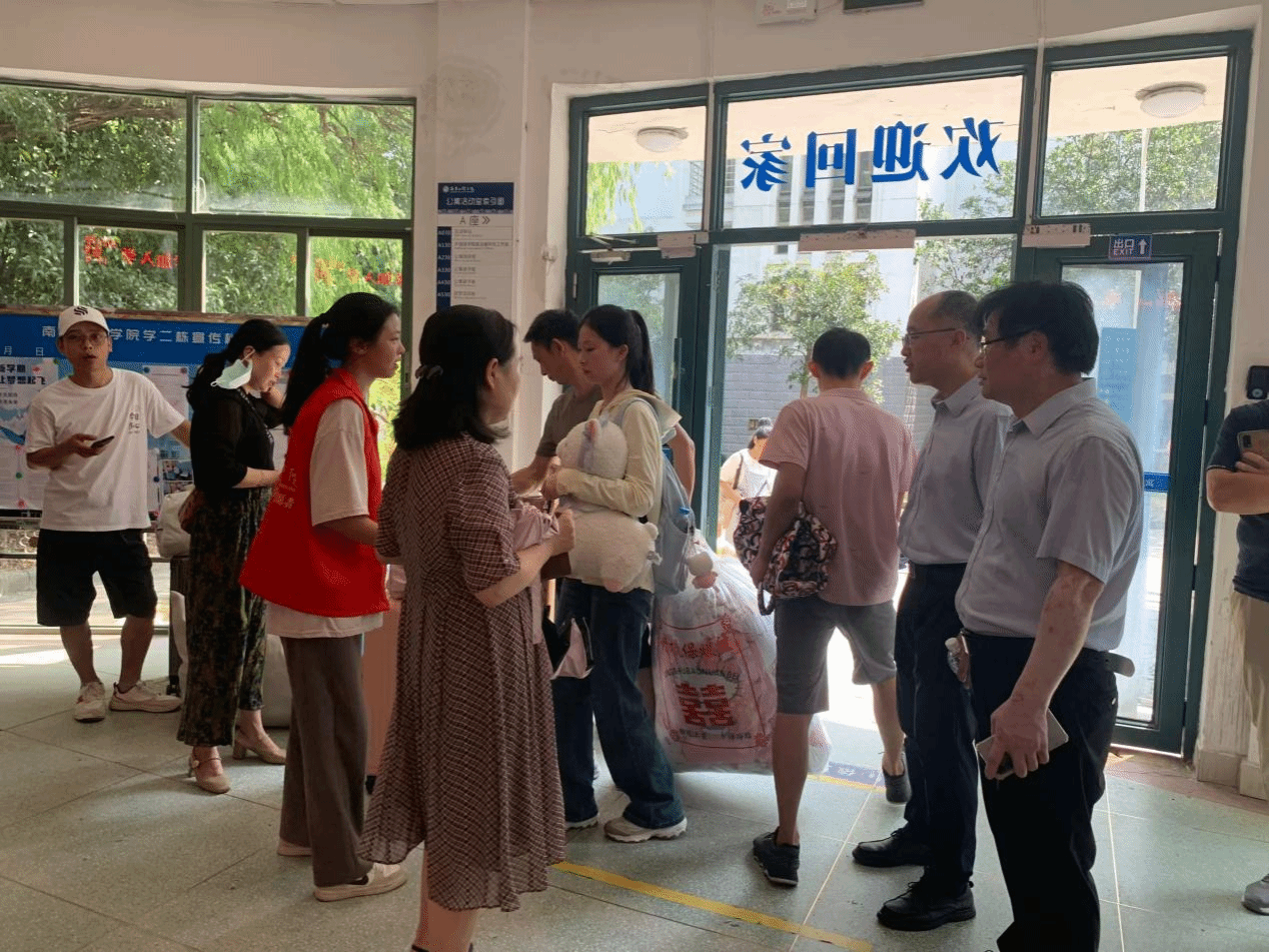 领导班子一行人前往学校集中迎新点、学院迎新点,仔细查看了学生手册等迎新物料,详细询问报到情况及新生入住情况,认真了解学院相关部门今年迎新工作中的新做法、新举措,并与新生及家长亲切的交流。同时,学院领导班子对迎新工作人员和学生志愿者的服务给予肯定,叮嘱大家要为新生做好服务,帮助新生更好地融入大学生活。