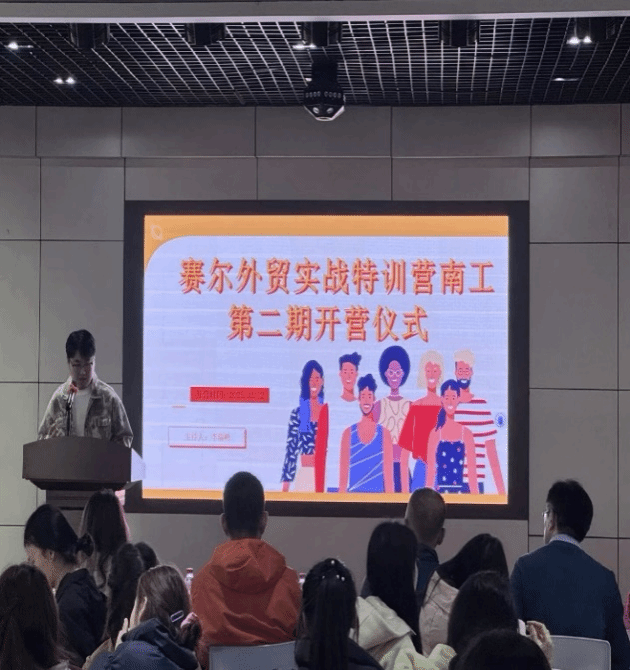 近日,外国语学院与赛尔集团于教学南大楼B515共同举办“外贸实战特训营”开营仪式,南昌工程学院党委委员、副校长李培生、赛尔集团招聘经理王思雨、外国语学院领导班子、特训营辅导员、班主任、助教以及53名特训营成员参加开营仪式。此次活动旨在为外国语学院学生提供直接对话企业的渠道,丰富实践经历,深化同学们对外贸行业的认知,提升专业技能。