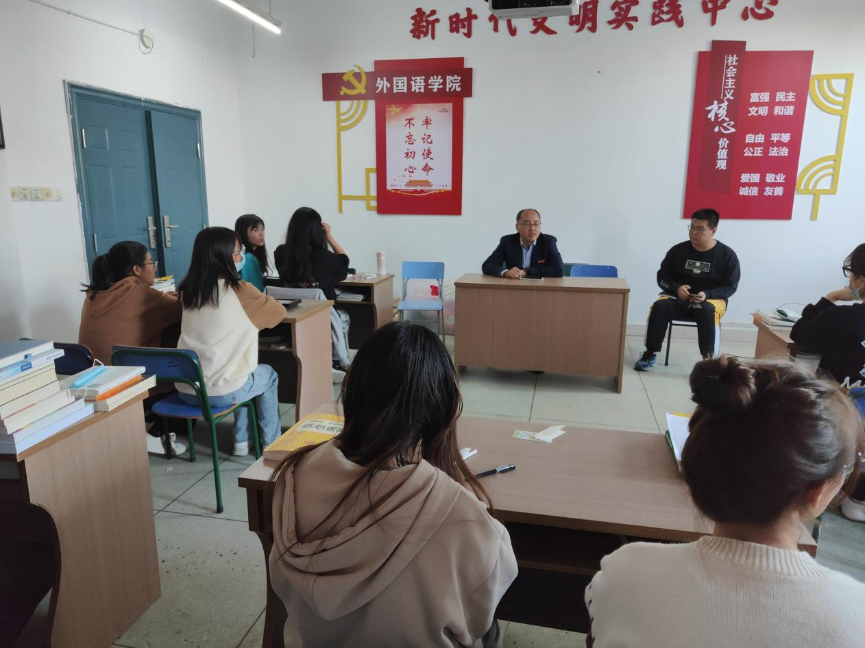 2022年10月15日,外国语学院在学二栋新时代文明实践中心组织召开网络宣传员座谈会。本次会议由外国语学院党委书记宋志刚主持。外国语学院辅导员章昱以及各班网络宣传员参与此次会议。