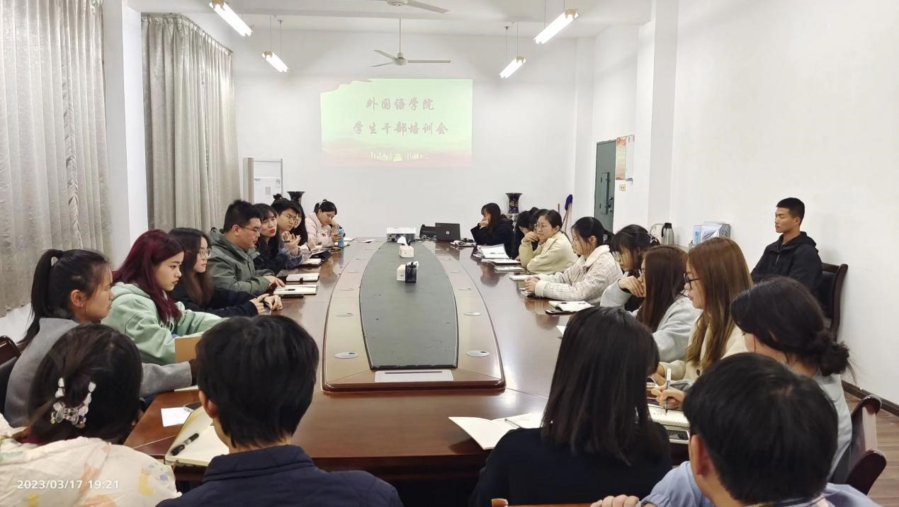 为进一步加强学生干部队伍建设,外国语学院于3月17日下午19:00在崇德楼A300召开外国语学院学生干部培训会,党委副书记李硕、辅导员章昱及学院主要团学干部参加本次培训会。