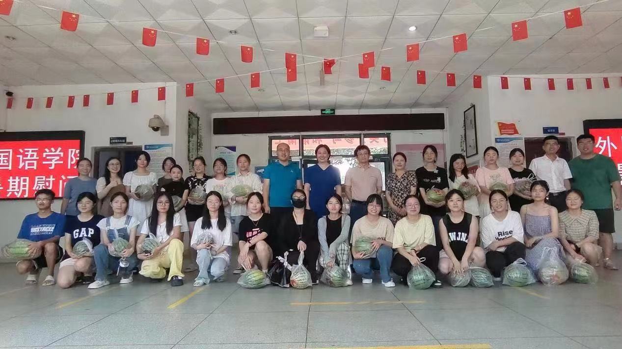 2023年7月19日,副校长周敏丹到学生公寓慰问暑期留校学生,外国语学院领导班子成员、辅导员和留校学生参加。