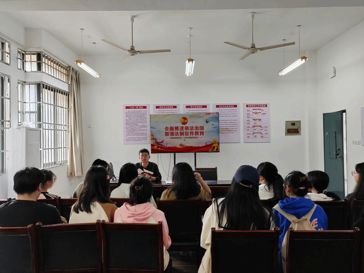2023年11月3日,为进一步加强大学生法治教育,外国语学院在崇德楼A103开展了国家法治宣传教育活动,外国语学院分团委书记兼学工办主任王聪与各班学生代表参加了此次活动。