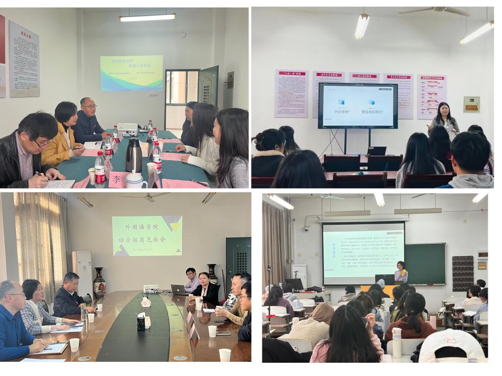 近日,为拓展就业资源,加强与企业的联系,外国语学院先后与义乌市英领供应链管理有限公司、深圳市飞速创新技术股份有限公司、深圳市明程电子科技有限公司、深圳市星子梦科技有限公司等四家企业开展座谈交流。副校长周敏丹出席座谈交流会,学院负责人、专业负责人和毕业班班主任参加座谈会。