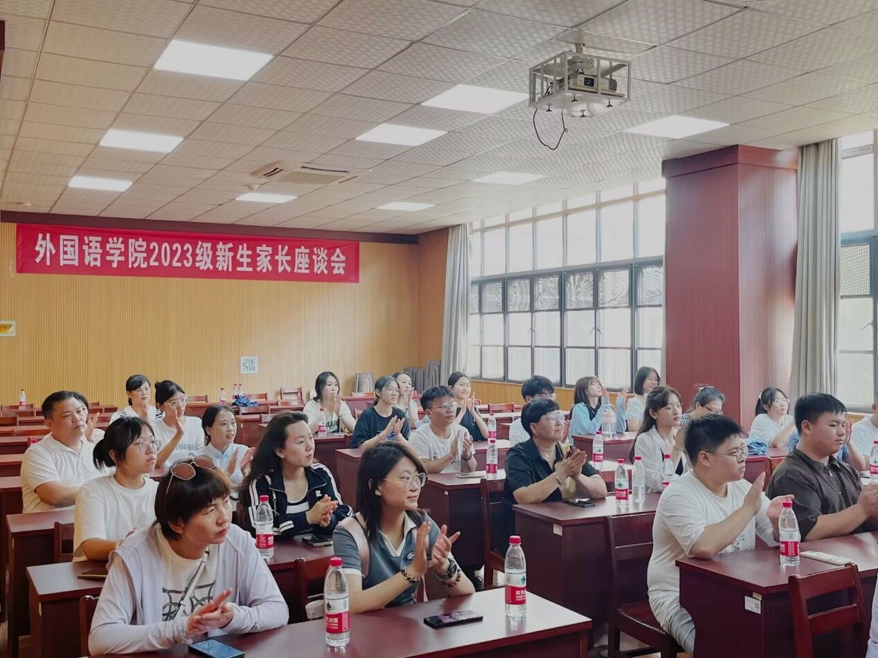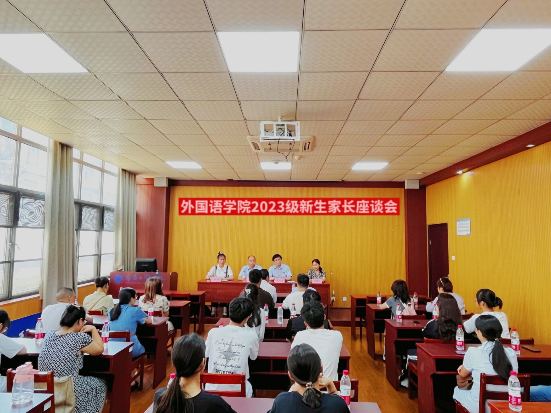 为促进家校形成育人合力,共同为2023级新生未来四年大学生活打好基础,9月8日下午,外国语学院在大学生活动中心B101召开2023级新生家长座谈会会,外国语学院领导班子出席本次会议。