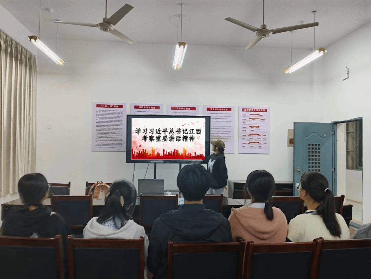 11月10日--11月20日,为深入学习贯彻习近平总书记在江西考察时的重要讲话精神,外国语学院组织各班团支部在班级内开展“学习习近平总书记江西考察重要讲话精神”主题团日活动。
