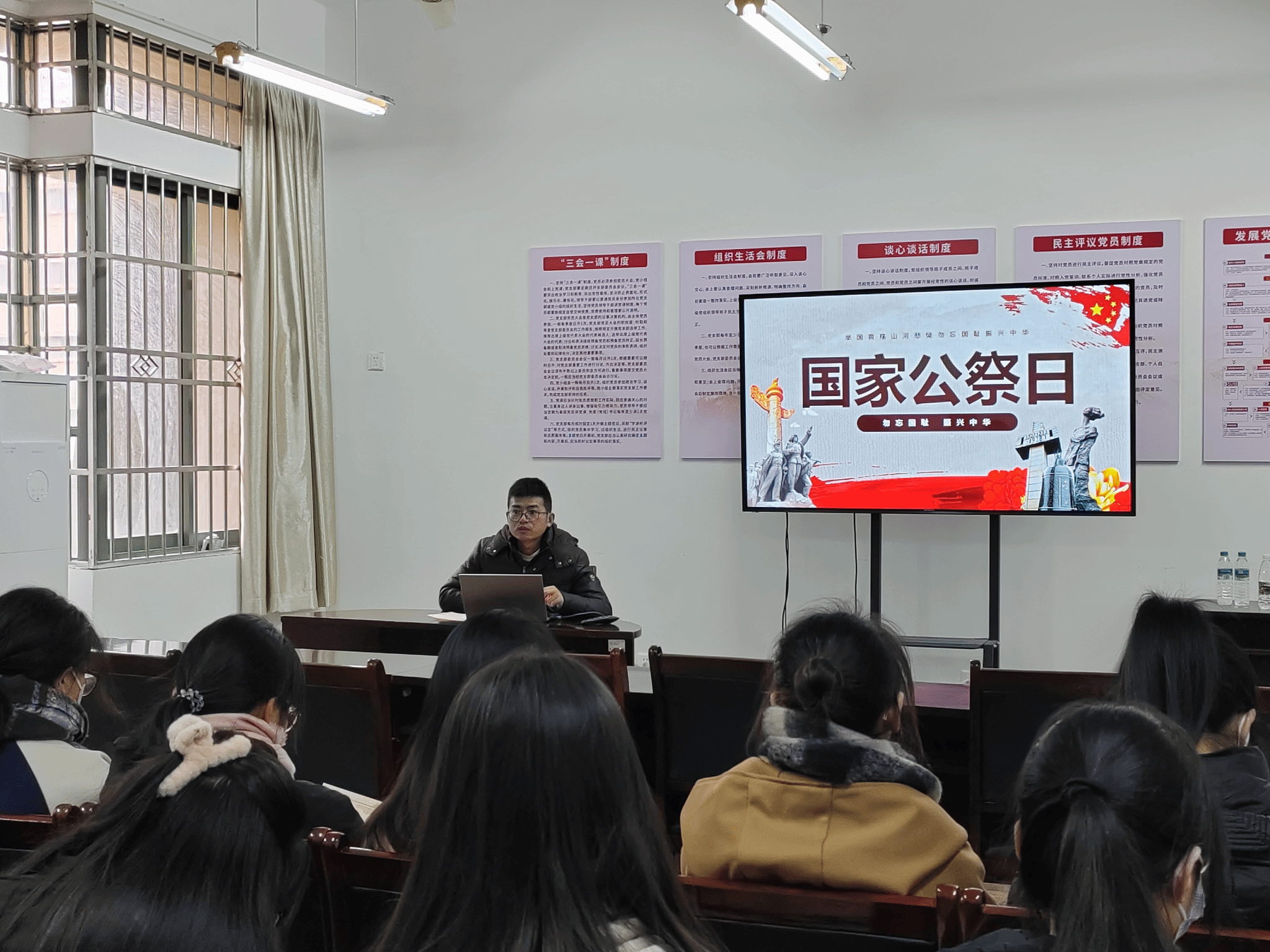 12月13日,为缅怀南京大屠杀遇难同胞与为中国人民抗日战争胜利献出生命的革命先烈和民族英雄,外国语学院在崇德楼A103教室举行了纪念活动。活动由分团委书记兼学工办主任王聪主持,各班学生代表参加。