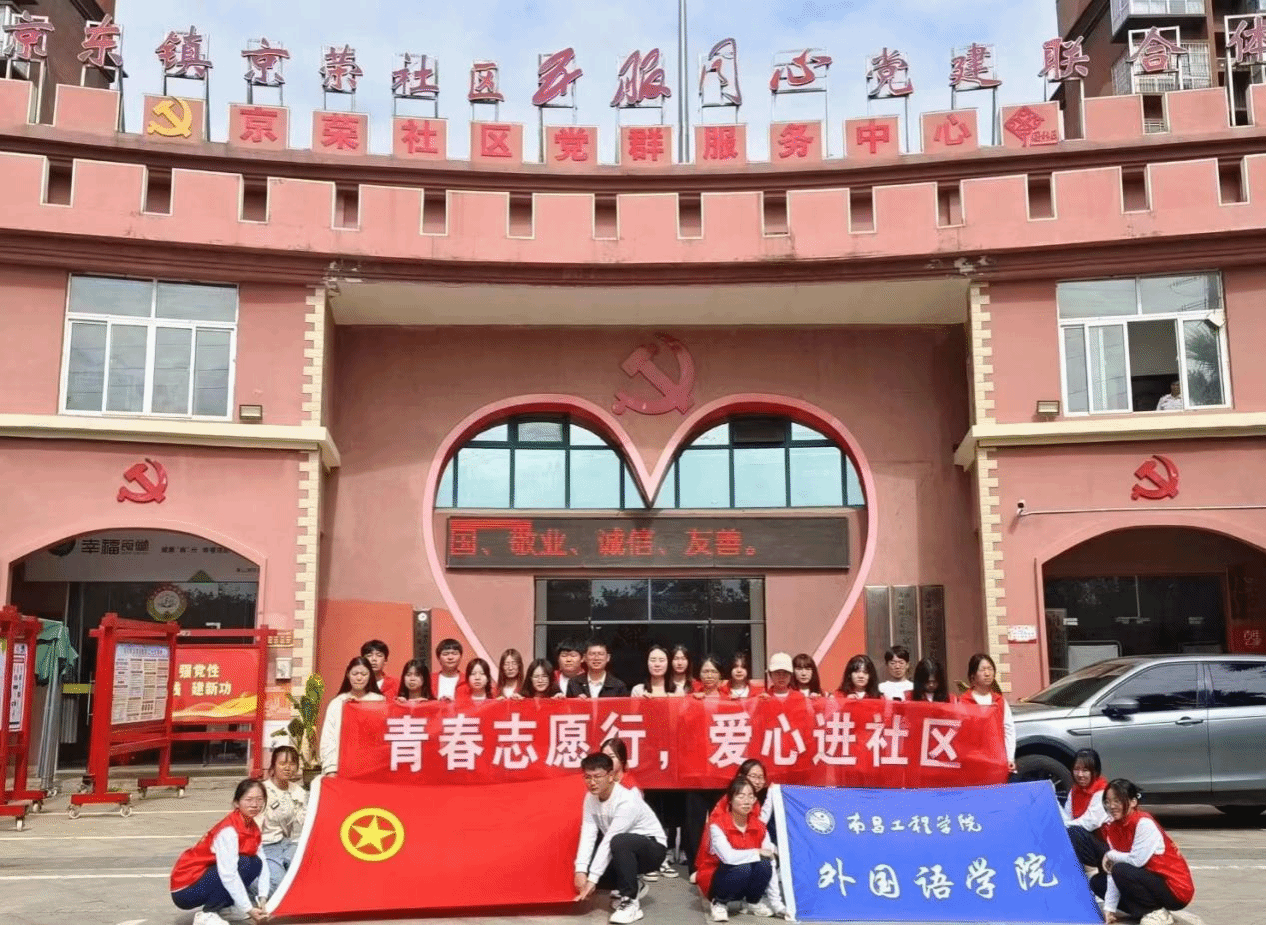 2023年10月28日,为深入学习贯彻党的二十大精神,进一步弘扬“奉献、友爱、互助、进步”的志愿者精神,外国语学院23英语01班级团支部组织志愿者前往学院结对共建社区——南昌市青山湖区京东镇京荣社区开展志愿服务活动。