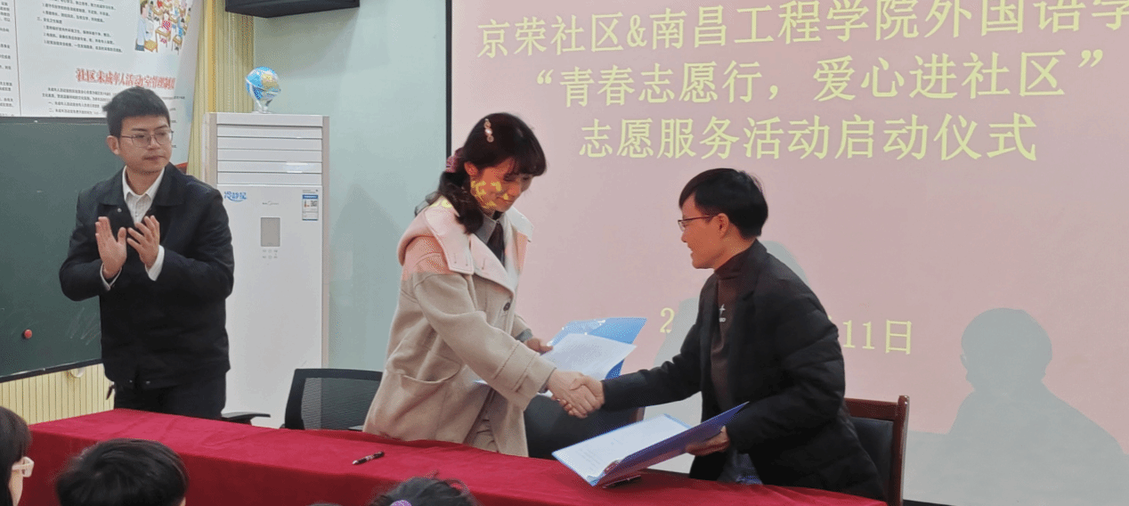 11月11日,为深入学习贯彻党的二十大精神,进一步弘扬“奉献、友爱、互助、进步”的志愿者精神,外国语学院23英语03班级团支部组织志愿者前往学院结对共建社区——南昌市青山湖区京东镇京荣社区开展志愿服务活动。外国语学院党委副书记李硕、团委书记兼学工办主任王聪参与此次活动。