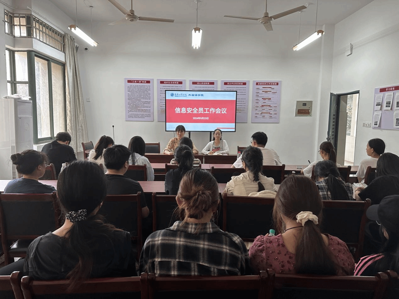 为进一步完善网络宣传制度建设,实现学院网络宣传阵地规范管理,近日,外国语学院于崇德楼A103召开网络宣传员会议,党委副书记李硕参加此次会议,该会议由分团委副书记兼学工办副主任谭酉群主持,各班网宣员参与此次会议。
