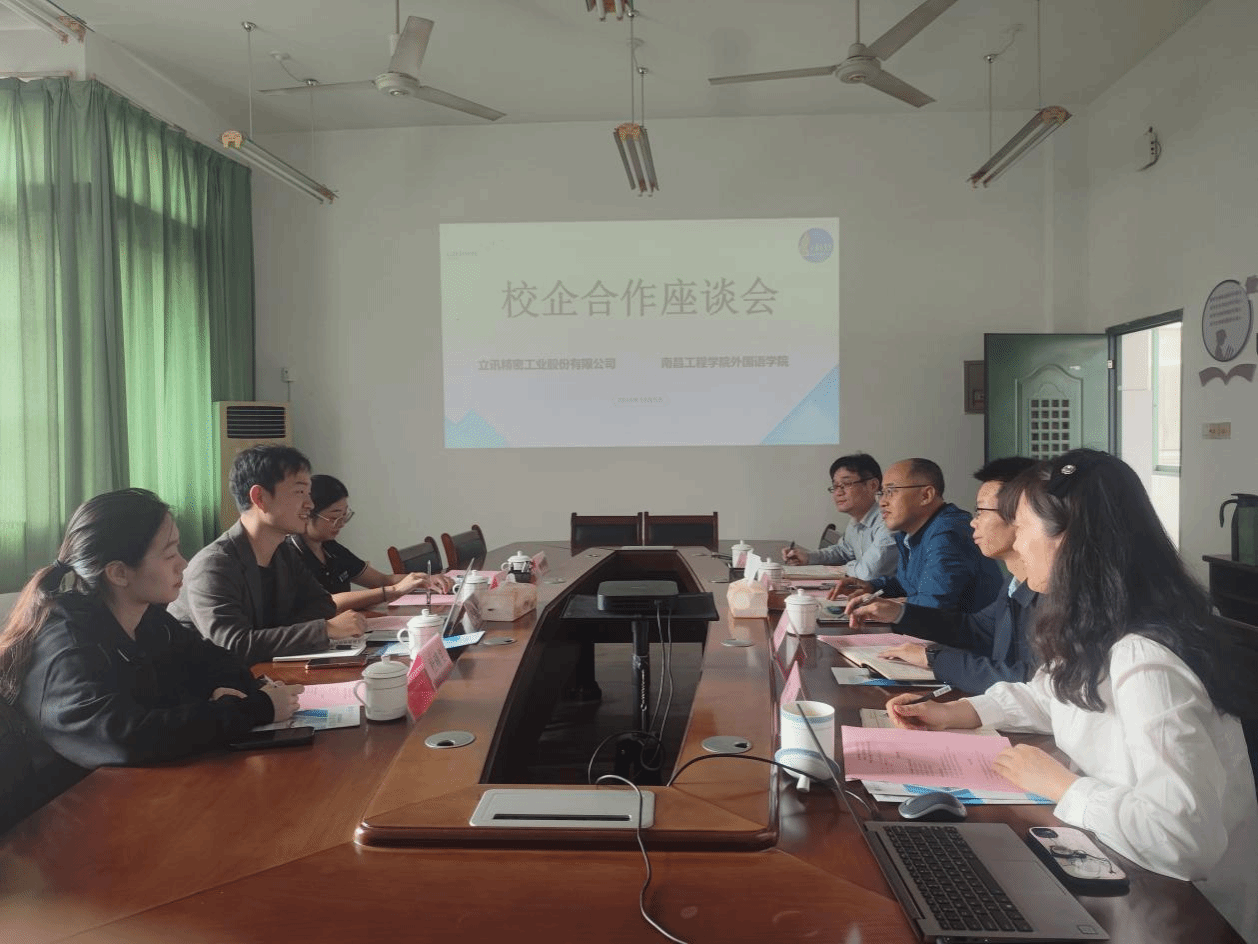 为进一步加深院企双方交流合作,推动毕业生顺利就业,10月9日,立讯精密工业股份有限公司与南昌工程学院外国语学院校企合作暨产业学院建设座谈会于崇德楼A302圆满完成。立讯精密工业股份有限公司招聘负责人,南昌工程学院教务处相关工作负责人、外国语学院领导班子出席此次会议。