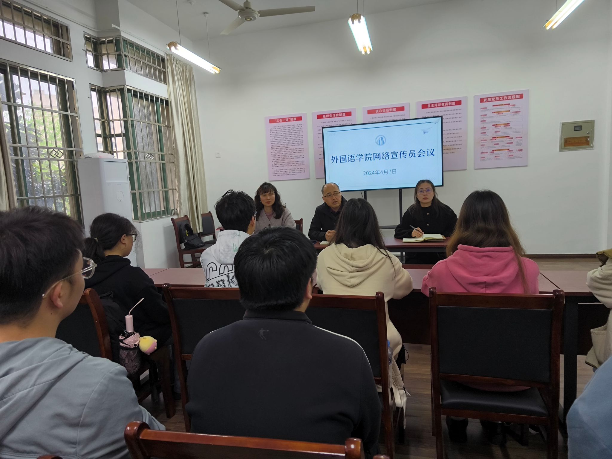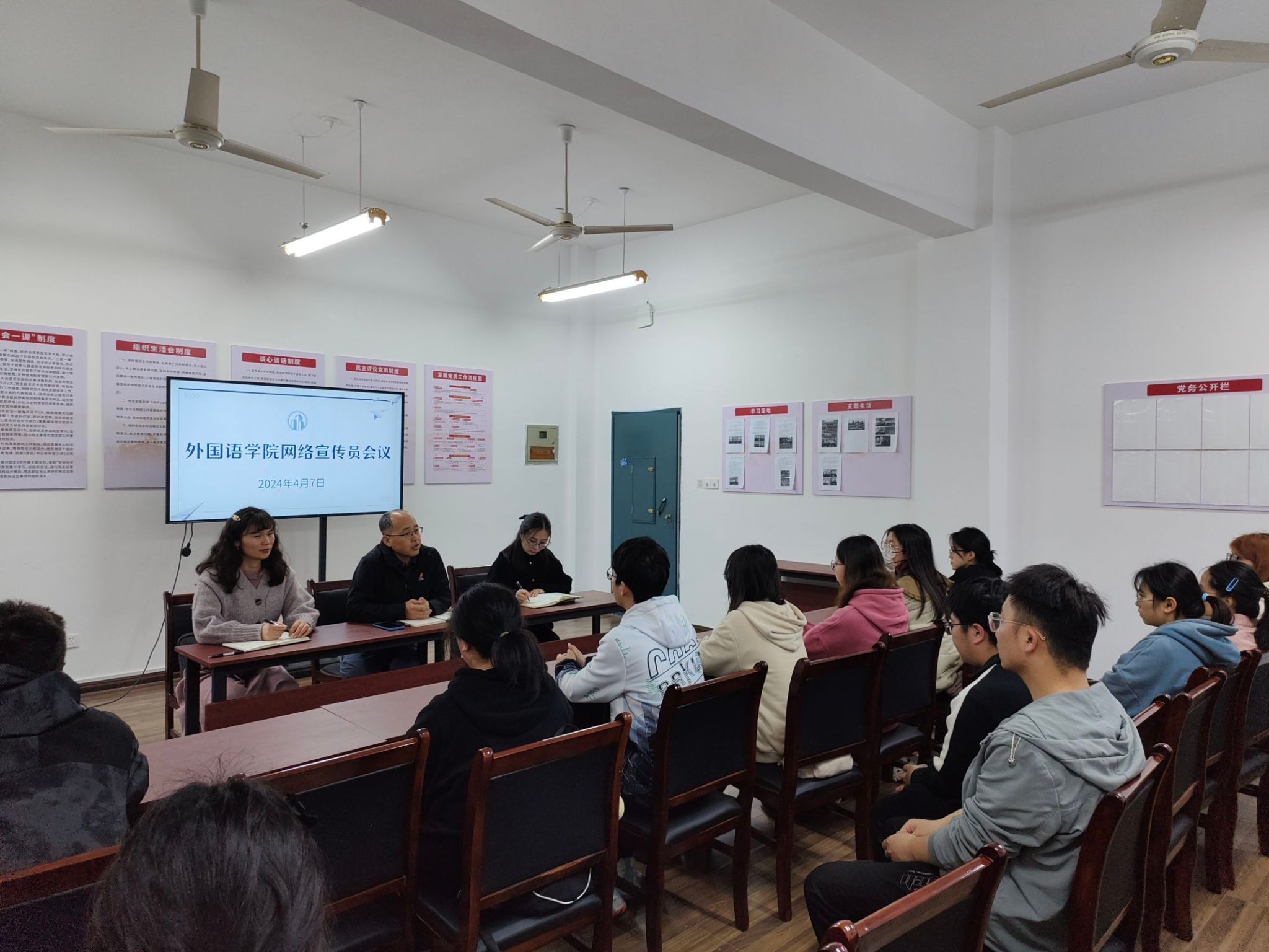 4月7日,为进一步加强网络宣传制度建设,规范学院网络宣传阵地管理,外国语学院于崇德楼A103召开网络宣传员会议,外国语学院党委书记宋志刚、外国语学院党委副书记李硕、外国语学院辅导员苏佳蕊及各班网宣员参与此次会议。会议由苏佳蕊主持。