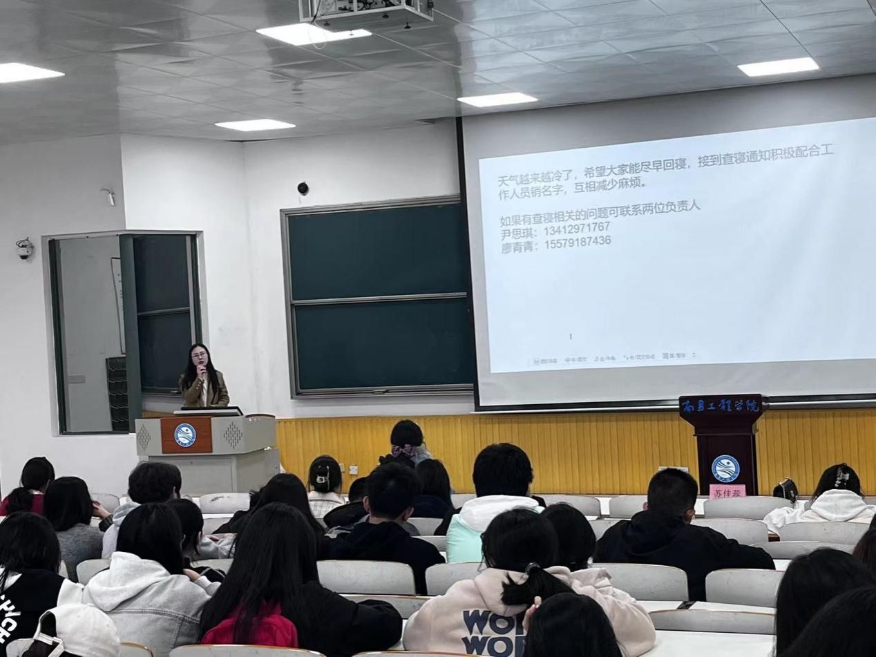 会上,李硕指出寝室长不仅是寝室的管理员和调解员,更是学院的宣传员和信息员,要严守用电安全和寝室文明卫生的底线,并就同学们关心问题一一提供了解决途径。辅导员苏佳蕊强调禁止使用违规电器,无法按时归寝的同学必须提前请假报备,遵守校纪校规。会议还就查寝、消防安全等方面进行了主题教育。